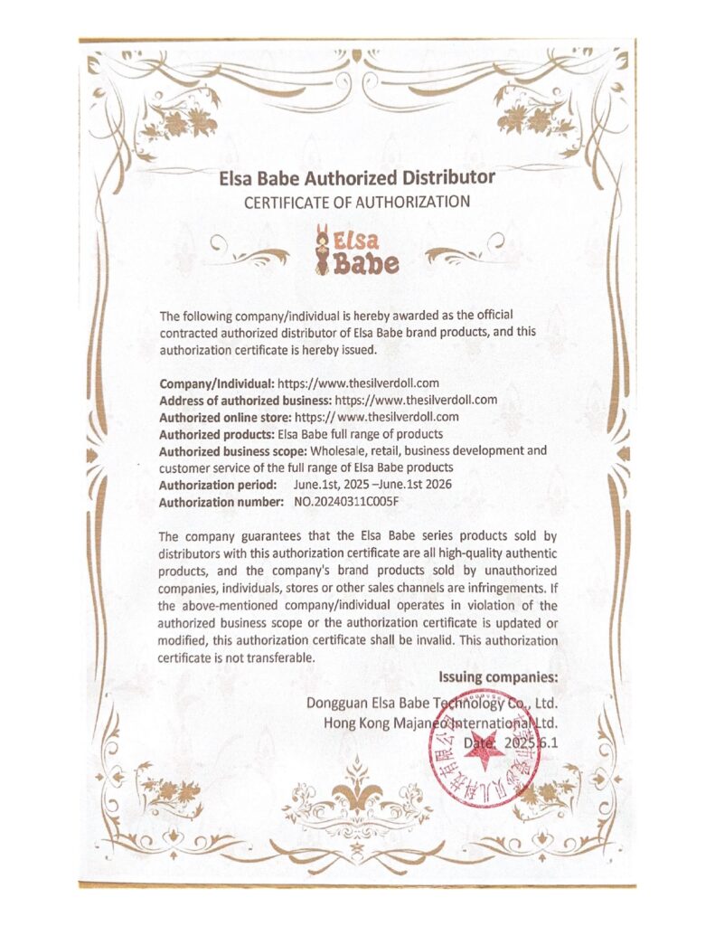 ‘Certificates of authorization‘ are increasingly used by realistic doll vendors as a way to prove that they are authorized resellers of a specific brand or manufacturer. Potential customers like them too, as they feel reassured when placing orders from their chosen reseller.