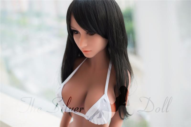 Generously breasted mini doll with three usable orifices: mouth, integrated vagina and anus.
